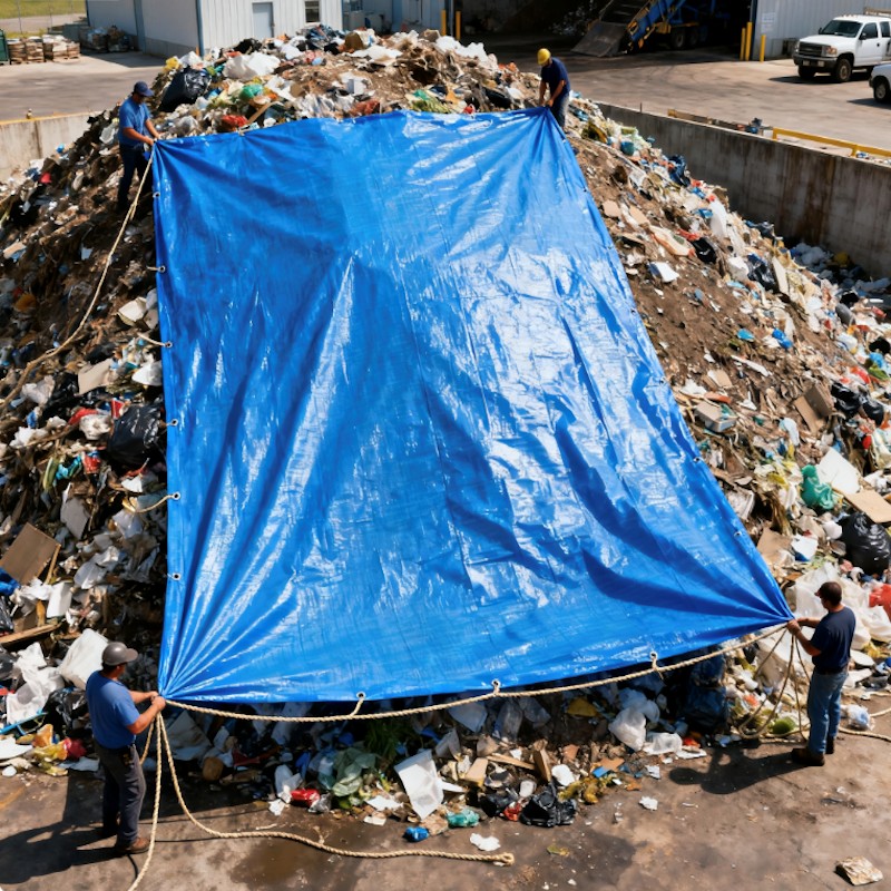 Essential for emergency stockpiles (e.g., festivals, disasters). Custom sizes (up to 20m×30m) cover expanded piles, and ≥15kN/m tensile strength resists tearing during hasty garbage stacking. Quick installation cuts setup time, helping stations manage sudden garbage surges efficiently.